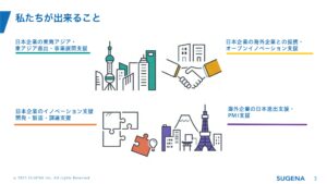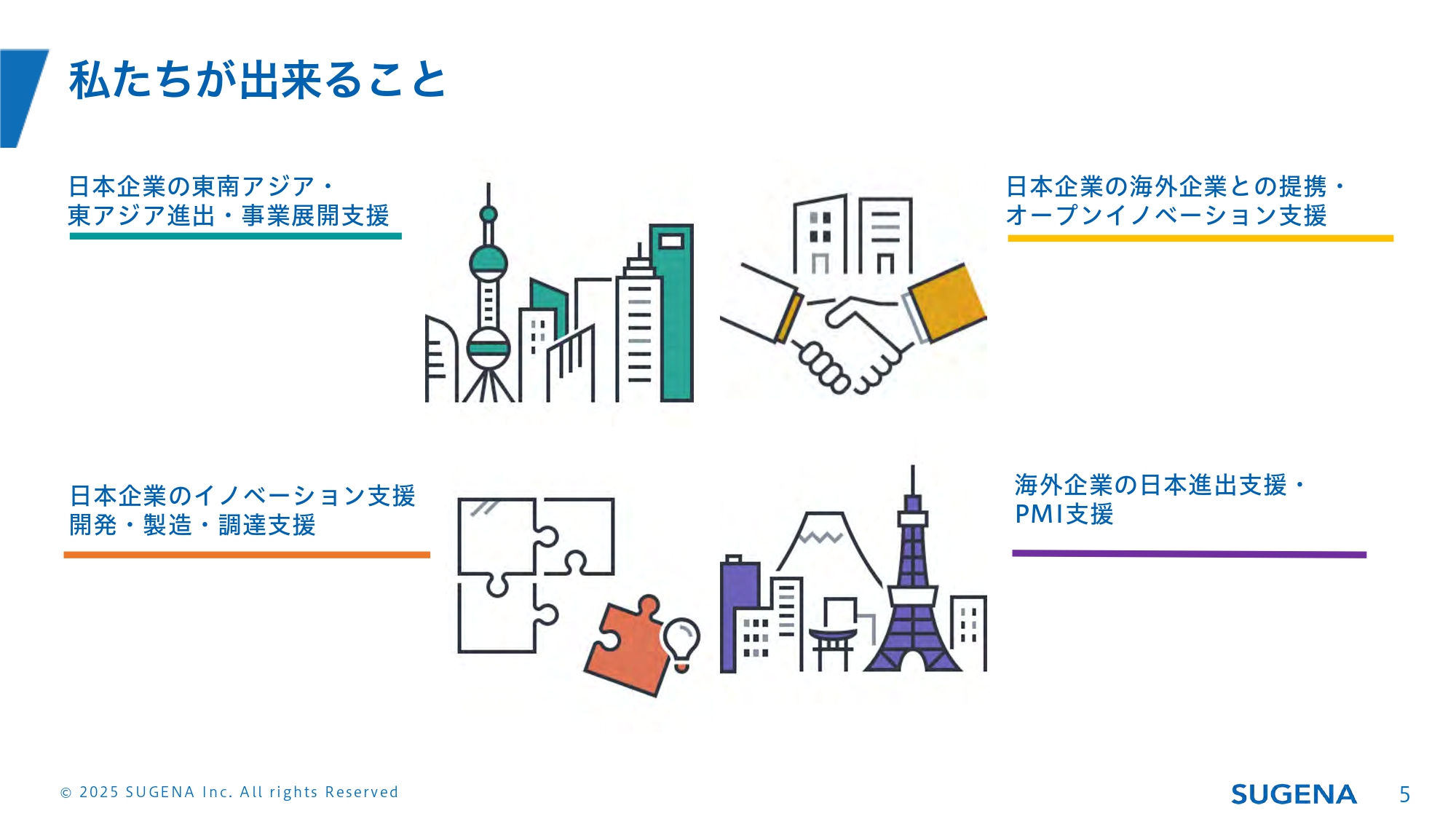 弊社関連 会社案内 弊社の事業内容をPDFにまとめました。 こんな方におすすめです 海外展開を検討されている方 海外のパートナー企業をお探しの方 海外市場調査・パートナー調査などを検討されている方 日本進出を目指す方、日本進出後の事業変革を検討されている方 ↓ 資料ダウンロードフォームへ 資料サンプル